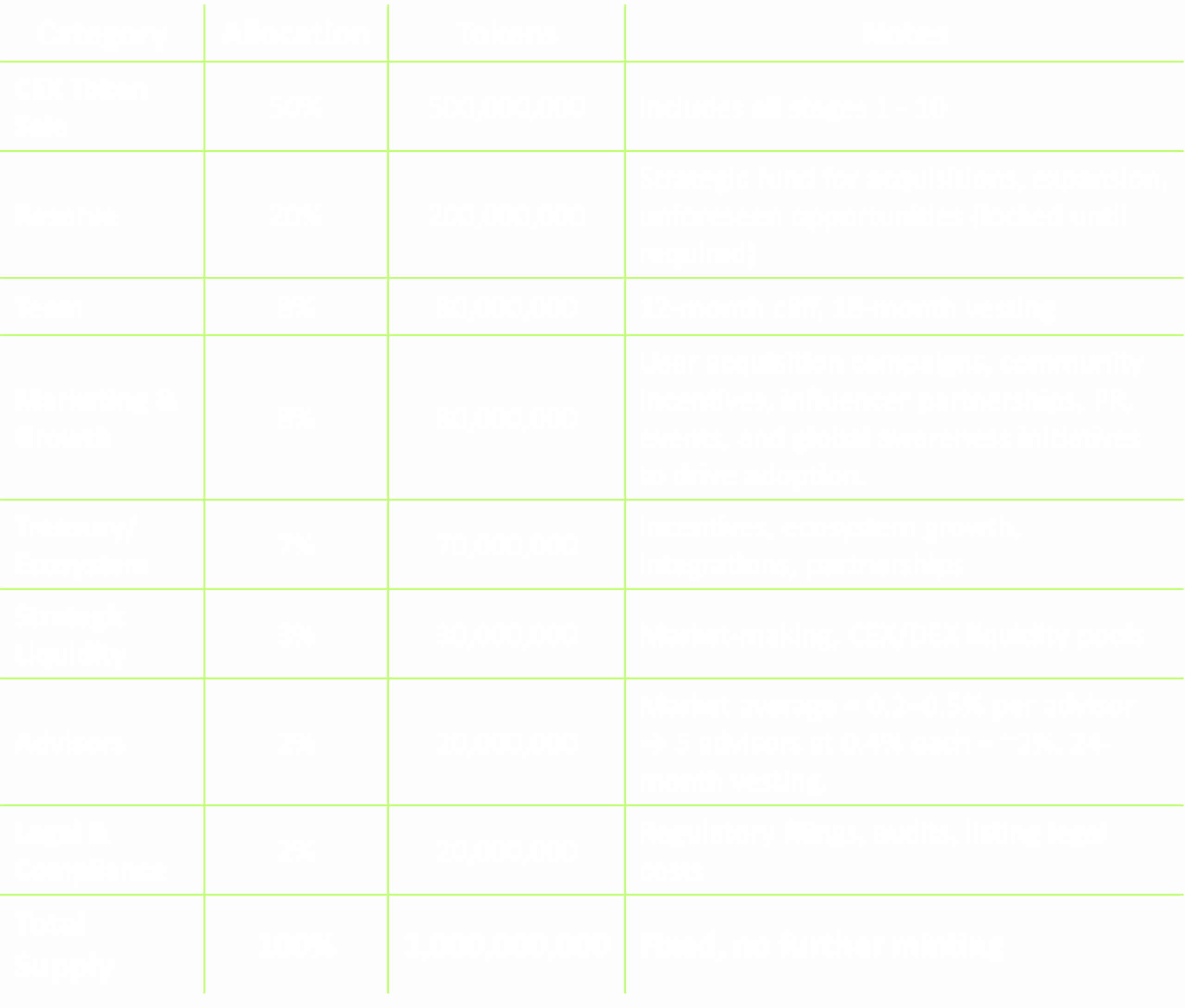- Why We Do This: This structure maintains long-term price stability, reduces short-term sell pressure, and ensures sustainable adoption, a key requirement for CEX partnerships.