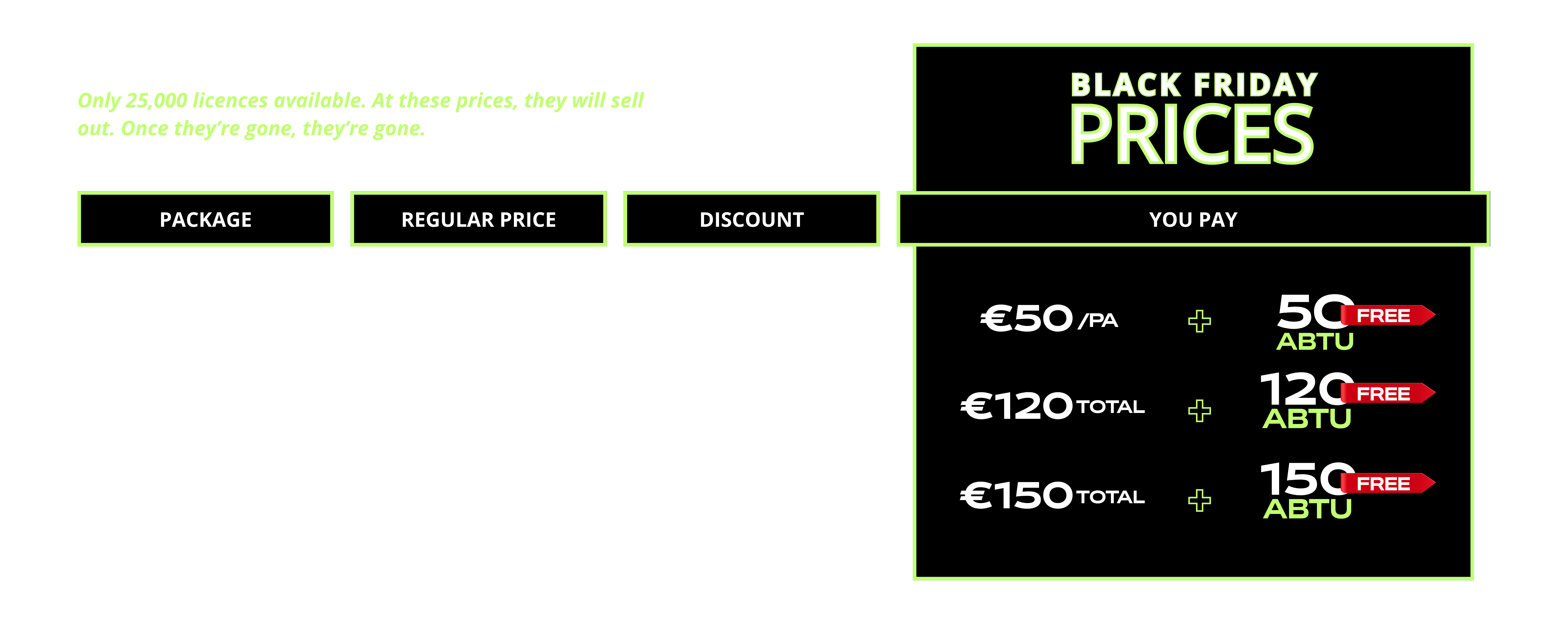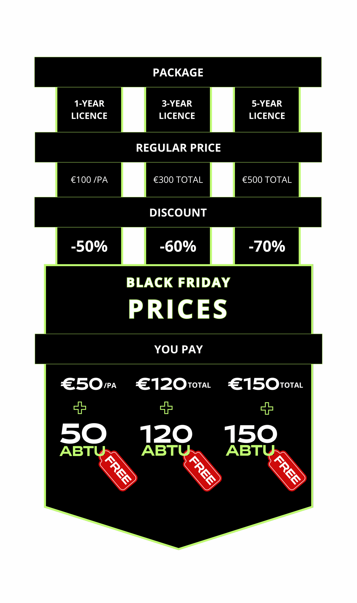 Black Friday Bonus: Get FREE ABTU tokens with every licence.